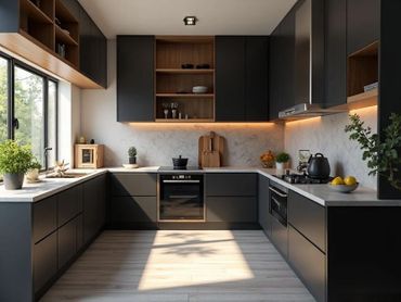 Attention to technical details is a key aspect of our service. Cabinets are equipped with concealed hinges, soft-close drawers, and modular components to enhance usability and longevity. Countertops and surfaces are treated to be water- and heat-resistant, while integrated systems such as built-in appliances, smart storage, and ergonomic layouts optimize everyday functionality.